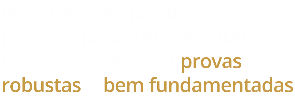 Nossas investigações patrimoniais oferecem evidências robustas para ações judiciais, como recuperação de ativos, fraude patrimonial, desconsideração da personalidade jurídica e apoio na localização de bens devedores e avalistas.